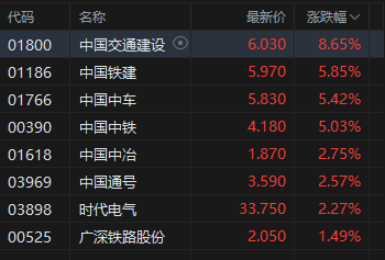 高铁基建股走强,中国铁建涨超5%。广发基金认为,目前基建板块的估值仍处于历史较低位置,在政策催化与业绩改善双重驱动下,该板块有望延续“稳增长”主线行情。