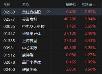 半导体板块涨幅居前,华虹半导体涨超3%。近日半导体板块催化不断,在英伟达重启H20对华销售后,另一家芯片巨头AMD也宣布将重启对华出口AI芯片。另外,芯片巨头ASML以及台积电相继发布超出市场预期的财报。华泰证券预计国内先进制程、存储扩产需求旺盛,半导体国产化加速,其中光刻机环节国产化亟需突破。